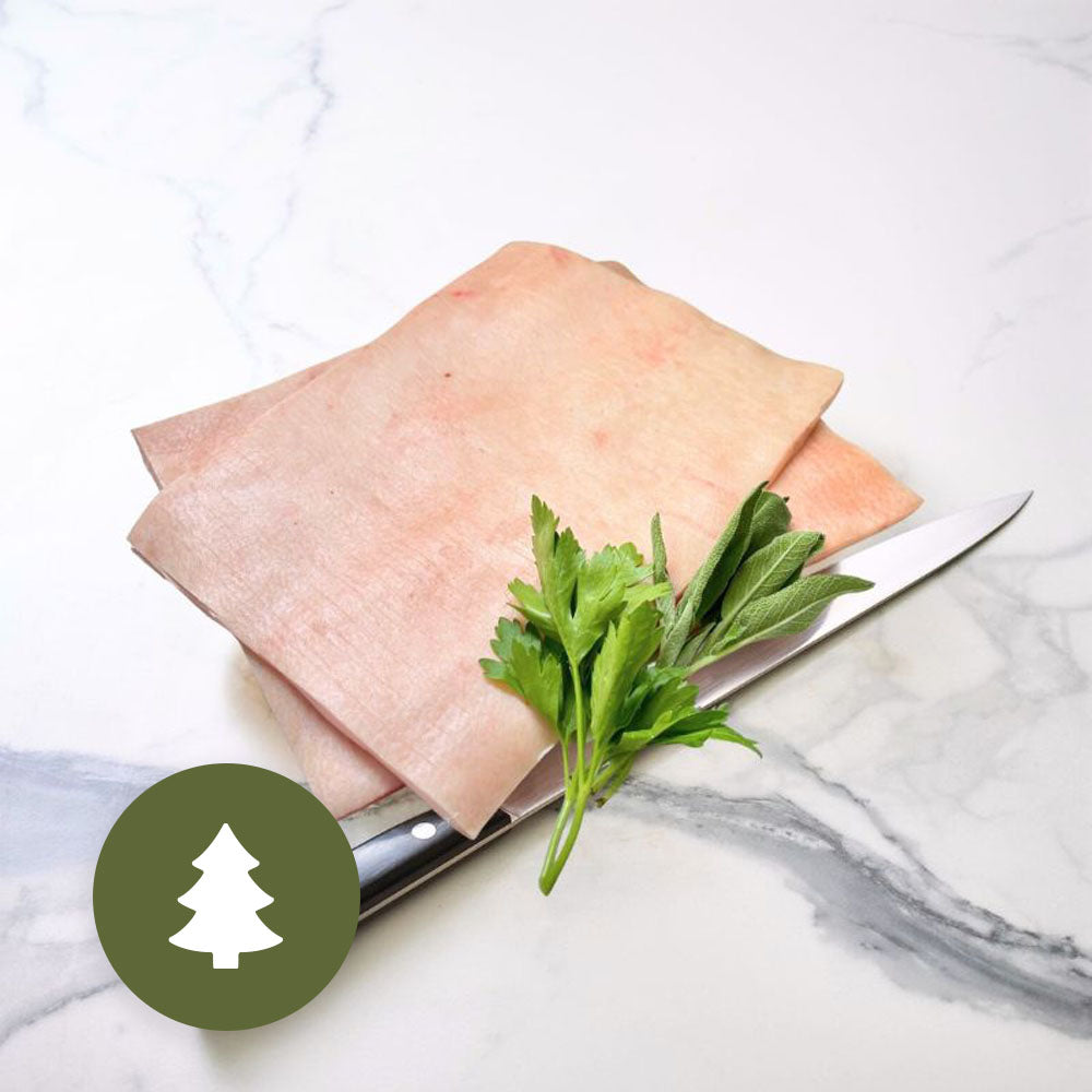 Premium Australian pork rind, expertly scored and ready to roast. Simply season and cook for crisp, golden crackling every time. 1 piece is approx. 350g.